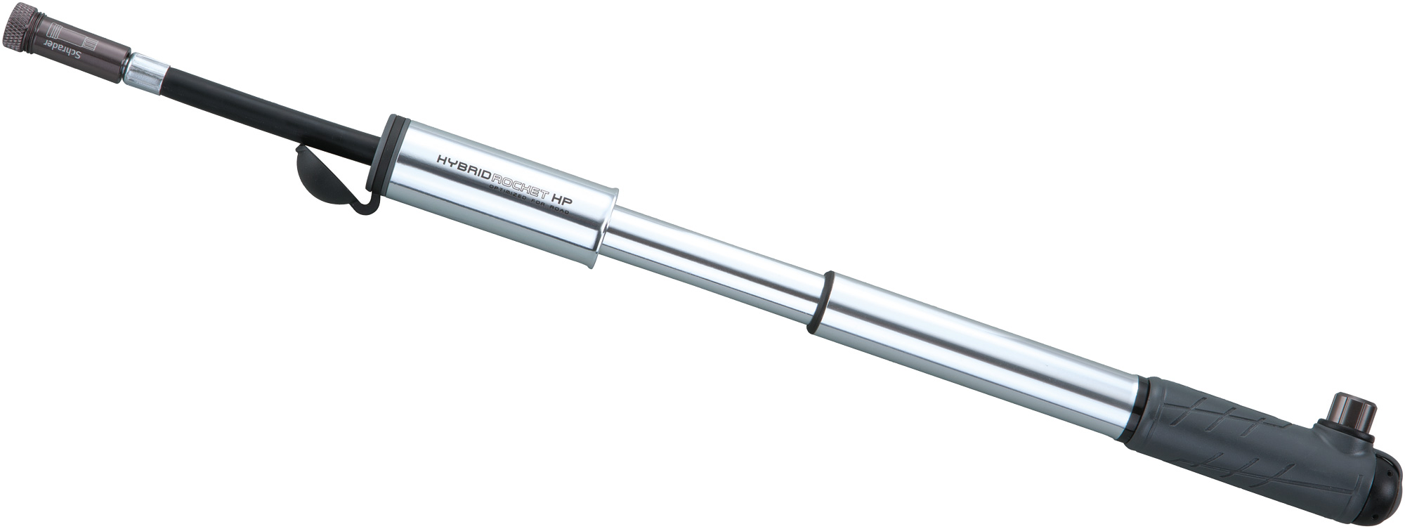 Topeak makes it easy to fill your tires with the HybridRocket HP pump. This innovative little ride-saver is a CO2 inflator on one side and a standard pump on the other. It also boasts aluminum construction for superb durability and max pump power. Its small size easily fits into a jersey pocket and with a capacity of 160 psi you'll have no problem getting rolling again. The HybridRocket's extendable hose with SmartHead fits both Presta and Schrader valves and lets you pump from a more comfortable angle, lessening chances of valve breakage.